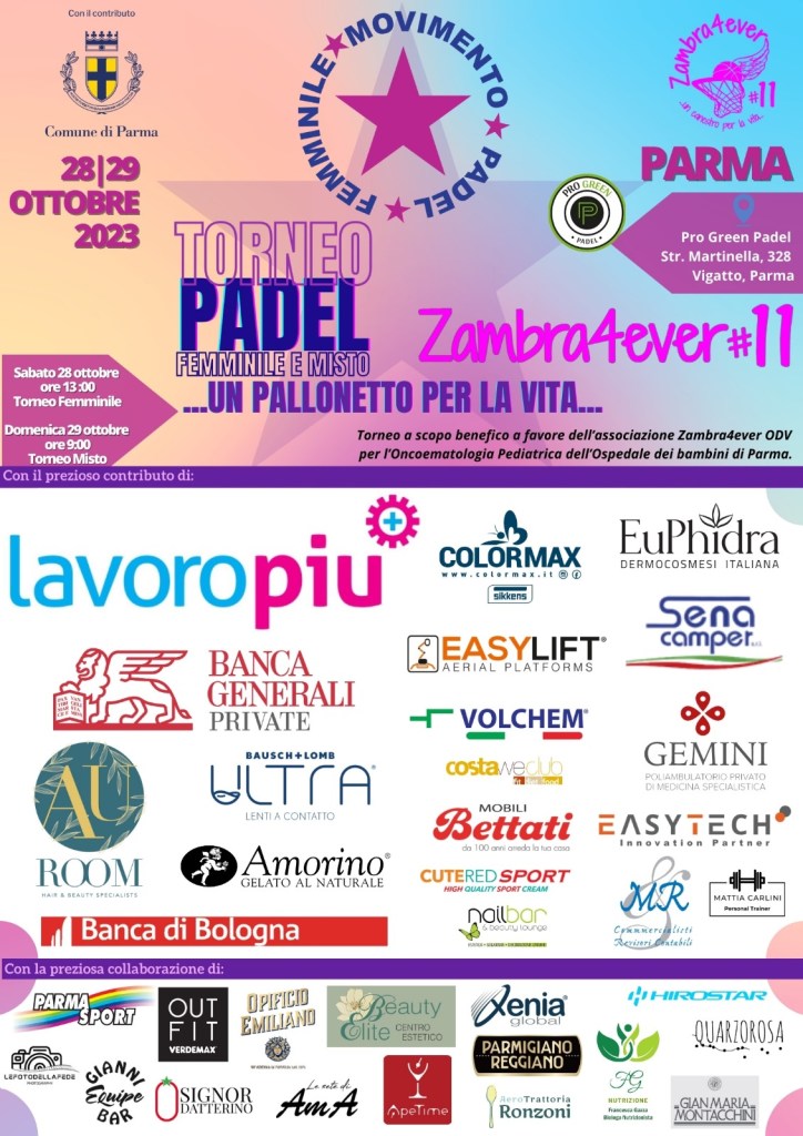 Il 28 e 29 ottobre presso il Pro Green Padel di Vigatto è andato in scena un magnifico Torneo di Padel (femminile e misto) organizzato a nostro favore dal Movimento Padel Femminile: 36 coppie femminili e altrettante coppie miste si sono sfidate a suon di “padellate” in due giorni vissuti in uno spirito di amicizia e solidarietà, magnifico connubbio che ci contraddistingue da sempre!