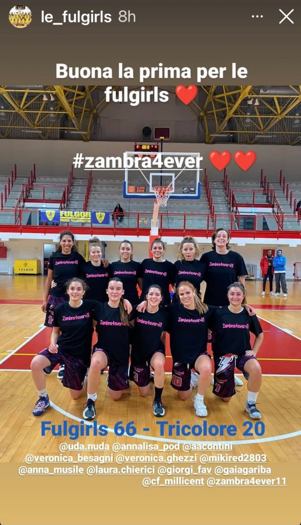 grazie di tutto cuore a tutte le ragazze del FBK Fiore Basket Valdarda e della Magik Rosa che nella prima giornata di campionato hanno voluto ricordare la Zambra