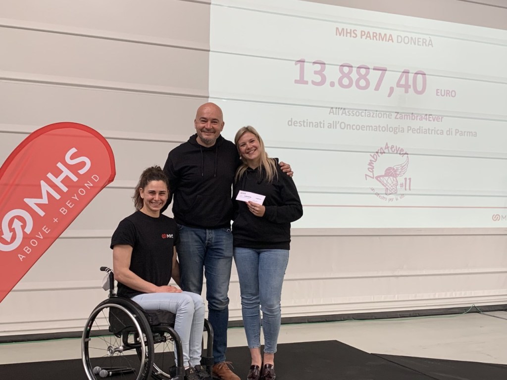 A Zambra4Ever 14mila euro per aiutare la Oncoematologia Pediatrica dell’Ospedale dei Bambini di Parma I dipendenti dell’azienda MHS Parma hanno donato ore di lavoro per sostenere i progetti dell’associazione nata in ricordo di Alessia Zambrelli. Testimonial dell’iniziativa, l’atleta paralimpica parmigiana Giulia Ghiretti.