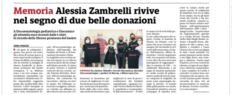 La solidarietà INDOSSO: il ricavato dell’acquisto della maglia Zambra4ever#11 verrà interamente devoluto al reparto di Oncoematologia Pediatrica dell’ospedale dei bambini di Parma